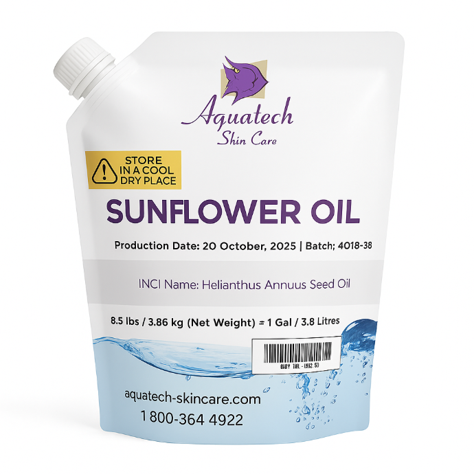Sunflower Oil (Helianthus Annuus Seed Oil) is a lightweight, nutrient-rich oil valued for its high linoleic acid content and excellent emollient properties. Ideal for skincare, body care, and hair formulations, it helps soften, smooth, and support the skin’s natural barrier. Naturally free from synthetic antioxidants like BHA and BHT, it is a clean, versatile ingredient for natural formulations. While highly moisturizing, it is best blended with other oils for a balanced, non-greasy finish. Available in 32 oz / 908 g or 8.5 lbs / 3.86 kg sizes.
